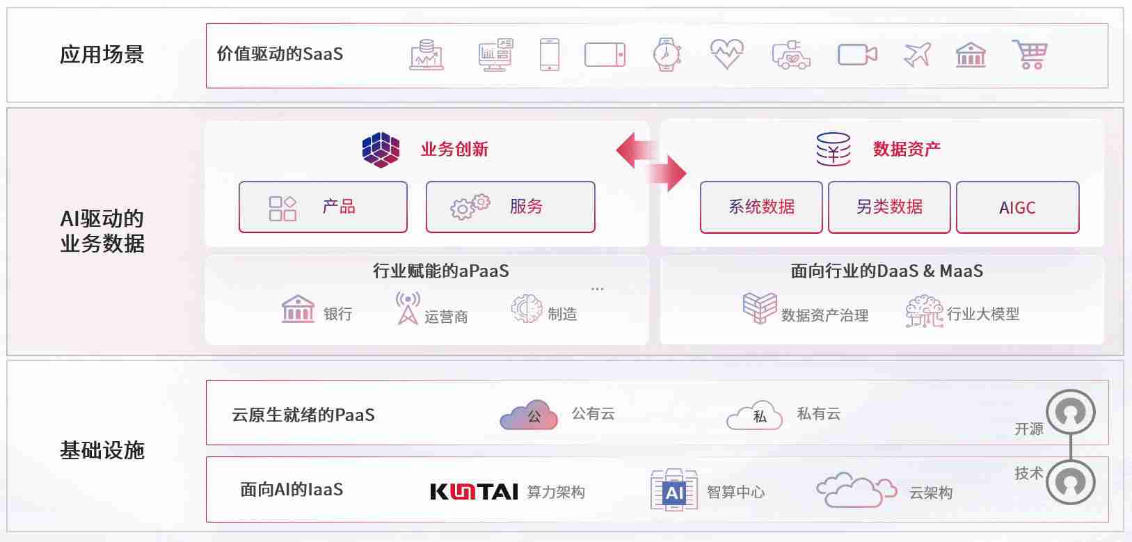 数字时代,,,,围绕企业数字化转型的关键要素,,,,尊龙凯时人生就是赢数码开创性的提出数云融合战略和技术体系框架,,,着力在云原生、、数字原生、、AI原生和信创产业上架构产品和服务能力,,,,为处在不同数字化转型阶段的快消零售、、、、汽车、、金融、、、、医疗、、、政企、、教育、、、、运营商等行业客户提供泛在的敏捷IT能力和融合的数据驱动能力,,构建跨界融合创新的数字业务场景和新业务模式,,,助力企业级客户建立面向未来的核心能力和竞争优势,,全面推动社会的数字化、、、、智能化转型升级。。