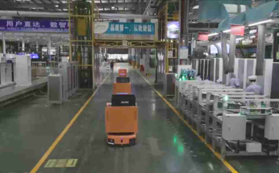 为车载冰箱物流配送打造的智能解决方案,,,,包含产中物流通过潜伏举升AMR搬运至线边,,,产后成品物流智能仓储,,,流程包含产中物流智能齐套入库,,线边安灯叫料AMR智能配送至线边,,,成品入库、、、、出库,,,通过无人堆高车机器人,,,,智能仓储管理替代人工作业管理,,,实现更高存储、、、、更高效率、、、更具柔性化的解决方案。。。